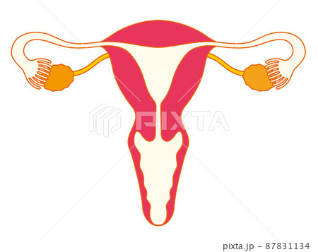 子宮と卵巣のメディカルイラスト、卵巣全体が見える