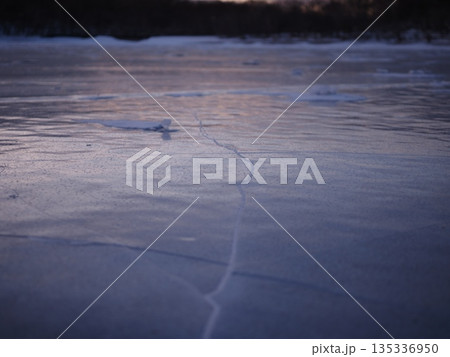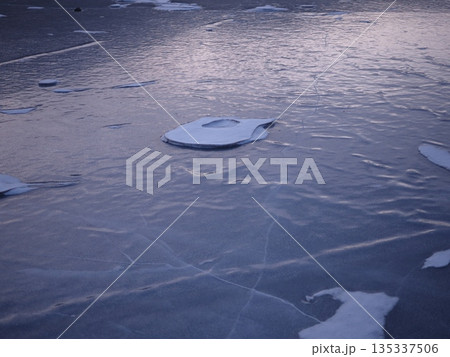早朝の氷湖と雪の塊(afr20260110064116)