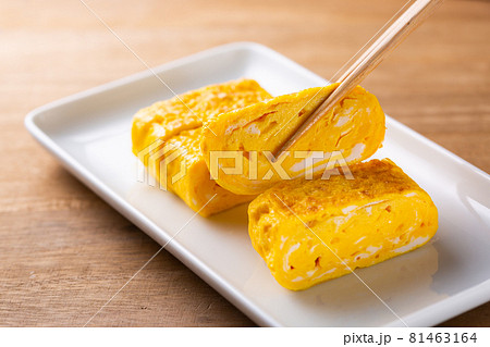食卓の厚焼き卵 卵焼き だし巻き卵