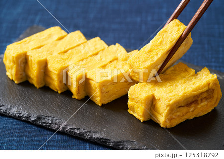 食卓の厚焼き卵 卵焼き だし巻き卵