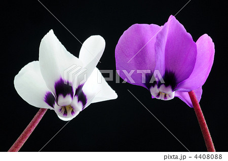 植物写真 温室のミニシクラメン寄せ植え 色とりどりのミニシクラメン寄せ植え