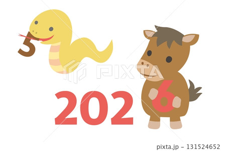 2025年ヘビから2026年馬へ 干支イラスト素材