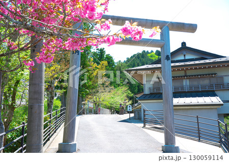 立里荒神社参道の鳥居とボタンザクラ2 奈良県吉野郡野迫川村