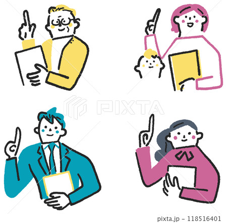 参考書を手にして指を指す人々 セットのストックイラスト素材