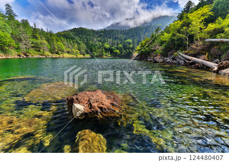 日本 長野 八ヶ岳の森林と池