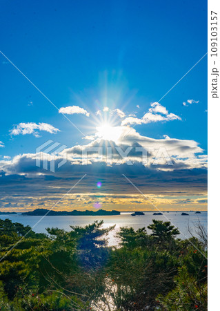 日本三景 松島 双観山から眺める松島湾 初日の出(宮城県松島町)