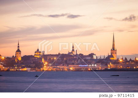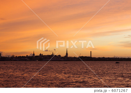 silhouette of tallinn with fire sunset