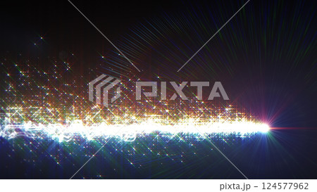 水平に走る星屑のような光のエフェクトとレンズフレア - ホワイト