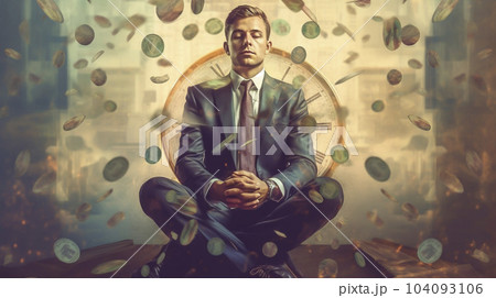 降ってくるお金とビジネスマンのイラスト「AI生成画像」