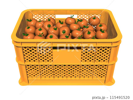 収穫したミカンが入っている収穫カゴ コンテナ(3DCGイメージ)