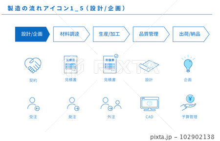 製造の流れのシンプルなアイコンセット1_5(設計/企画)、ベクター