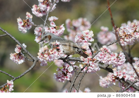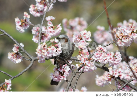 満開の桜がヒヨドリの食欲を満たしてくれる
