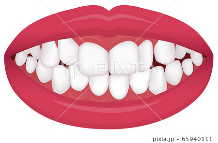歯並び・歯列・不正咬合の種類 ベクターイラスト / 叢生(乱杭歯)