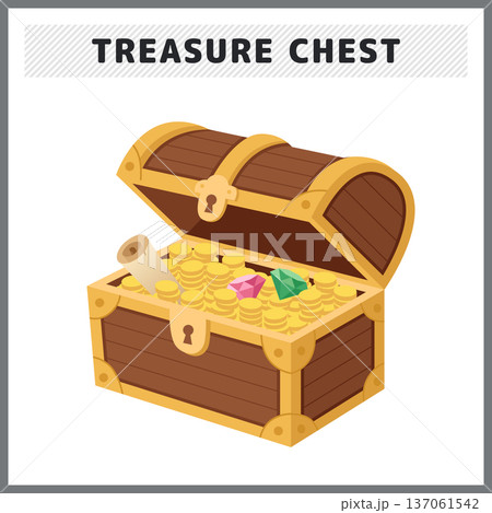 金貨と宝石が入った宝箱のイラスト 冒険ファンタジーのトレジャーチェスト ベクター素材