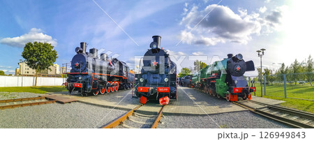 Classic vintage retro train trains steam locomotive locomotives in Belarus.