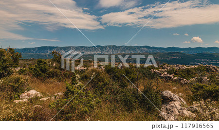 Krk Croatia A view of the mountains and the sea near the town of Rudine