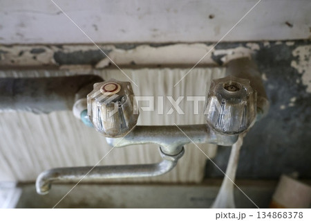 昭和レトロの蛇口と流し台、廃墟となって使われなくなった水道