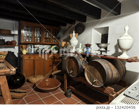 enchanting cellar atmosphere showcasing vintage wooden barrels and timeless tiled flooring