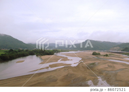 赤茶色の川底が広がる斐伊川/島根県出雲市