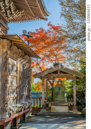 東京 八王子市 秋の高尾山薬王院 開山行基菩薩と鐘楼