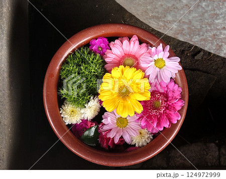 Bouquet of flowers in vase / フラワーアレンジメント(花の手水鉢)