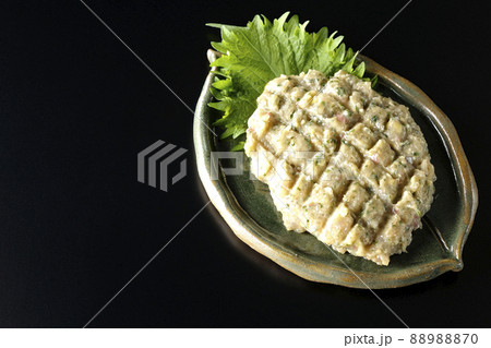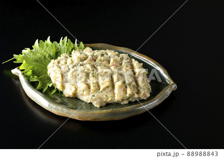 鯵を沢山叩いて作った郷土料理のなめろうを白背景で撮影