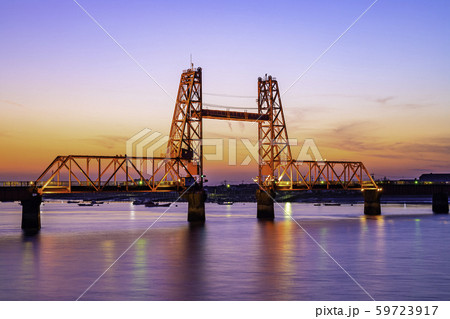 国指定重要文化財 夕日に染まる美しい筑後川昇開橋