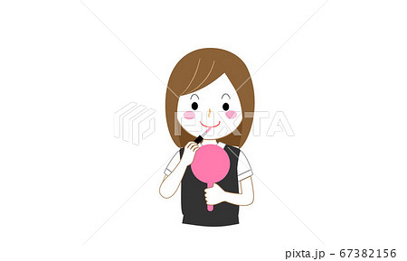 グロスをぬる女子高生または女子中学生(おしゃれに目覚める年頃)(制服姿)