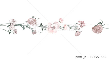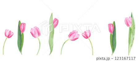 Tulip seamless border watercolor isolated on white. Hand painted pink flower illustration. High quality clip art perfect for mother's, women's day cards, posters, perfume, packaging, decor, eco design
