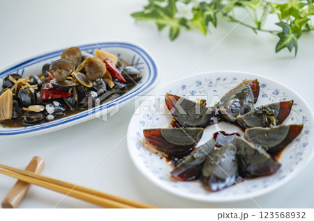 中華料理前菜ピータンとしじみの醤油漬けには紹興酒