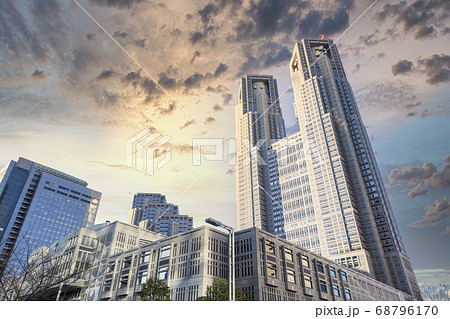 都市風景 東京都庁と夕空の合成