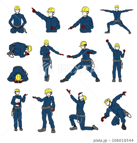 工場作業員ポーズイラストセット防護服