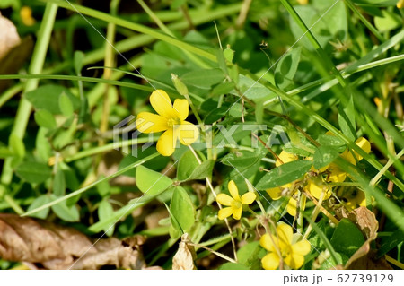 三鷹中原に咲く黄色いカタバミの花