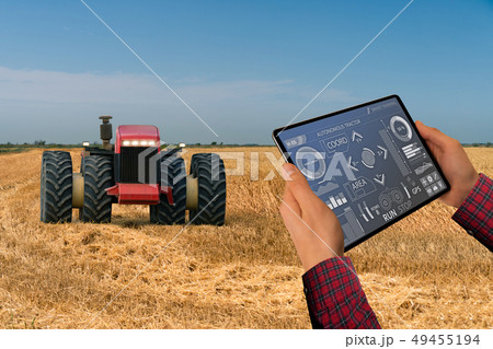 Farmer controls an autonomous tractor