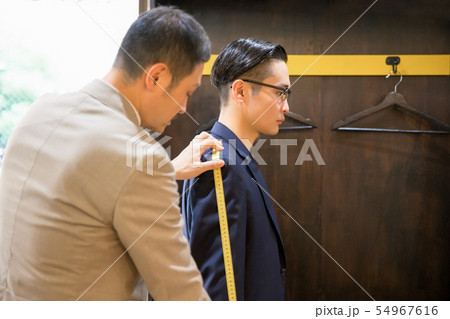 身体の採寸をする男性(オーダーメード・オーダー・サイズ)