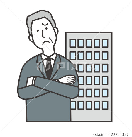 腕組みして悩む経営者男性