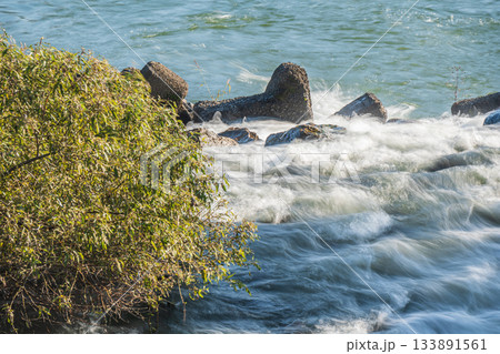 三栖洗堰から宇治川へ注ぎ込む急流 京都市伏見区