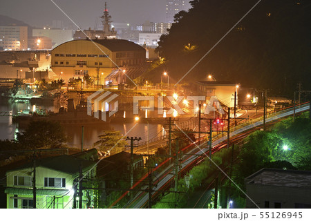 横須賀線と横須賀港の夜景 【神奈川県】 護衛艦