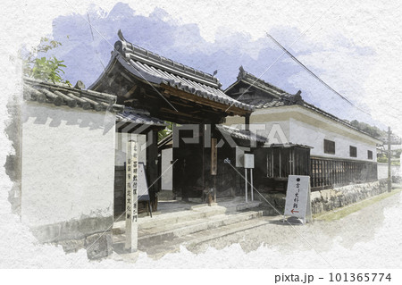 水彩画風 岩国 吉川史料館 山口県岩国市