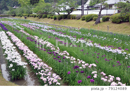 吉香花菖蒲園と吉川史料館。岩国城を仰ぐ(山口県岩国市)