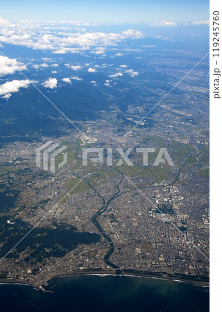 【空撮】神奈川県南部の相模川周辺 ワイド
