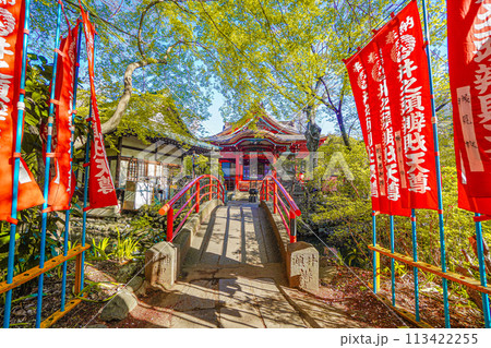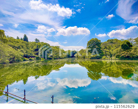 晴天 銅板張替工事が終わった井の頭弁財天が佇む東京・武蔵野市・三鷹市の恩賜井の頭公園