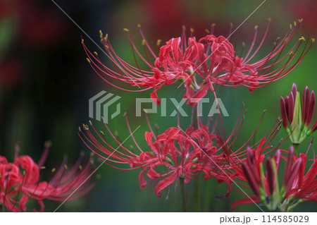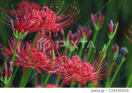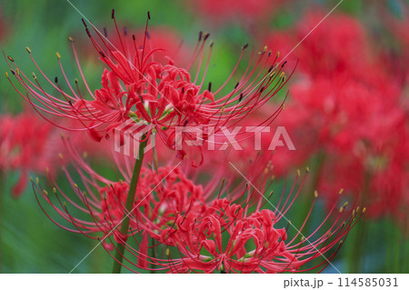 広島県辻の彼岸花群生地に咲く真っ赤な彼岸花