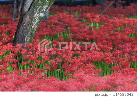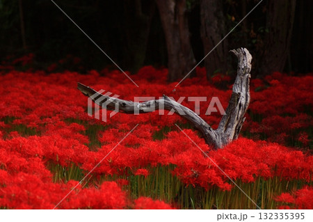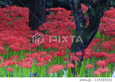 広島県辻の彼岸花群生地の古木の森に群生する彼岸花