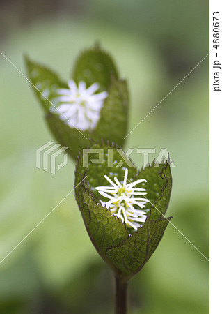 4月の雑木林にひっそりと咲いた「ヒトリシズカ(一人静)」