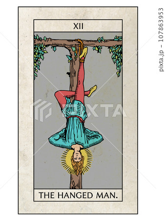 タロットカード 12 吊された男 かわいい デフォルメ 日本語 英語