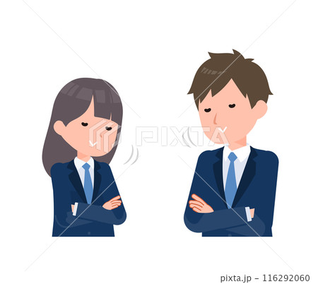 スーツを着たビジネスピープル男女。「あいつはわかってる」という頷き。
