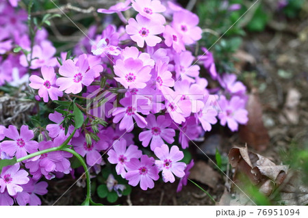 北海道の春の景色 桜と同時に絨毯のように、たくさんの花をつけるピンクのツツジ