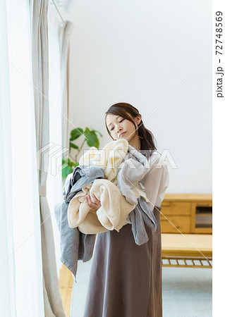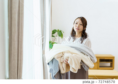 洗濯物を持っている女性