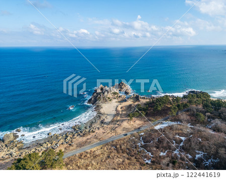 空撮「青森県」ドローンで中須賀海岸を撮影・種差海岸 冬